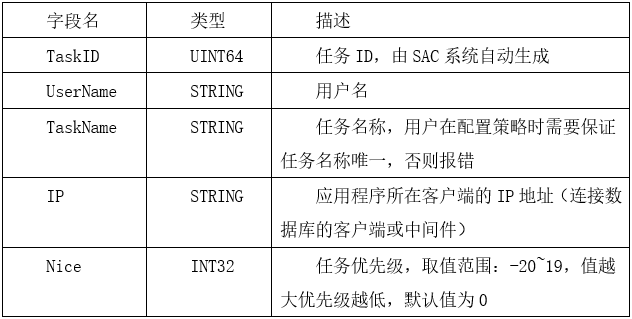 另一方面,任务需要与每个数据库连接一一对应。每一个数据库连接应当仅属于一个任务。任务定义可以使用用户名、连接源IP地址段等特征进行区分。