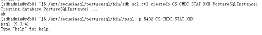 /opt/sequoiasql/postgresql/bin/sdb_sql_ctl createdb CS_CMBC_STAT_XXX PostgreSQLInstance1/opt/sequoiasql/postgresql/bin//psql -p 5432 CS_CMBC_STAT_XXX