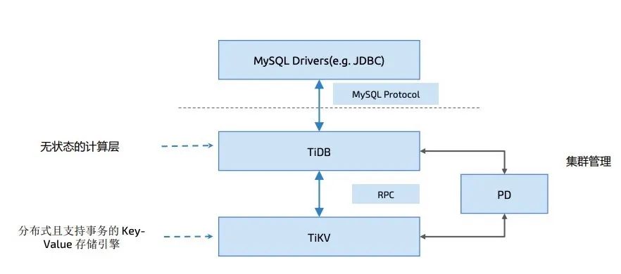 根据 PingCAP 高级技术总监、CMC 成员、华南区总经理姚维最近的《TiDB 性能设计及鲲鹏平台优化实践》演讲,TiDB Server 对应于 Google F1, 是一层无状态的 SQL Layer ,其本身并不存储数据,只负责计算。在接收到 SQL 请求后,该计算层会通过 PD Server 找到存储计算所需数据的 TiKV 地址,然后与 TiKV Server 交互获取数据,最终返回结果。在水平扩展方面,随着业务的增长,用户可以简单地添加 TiDB Server 节点,提高数据库整体的处理能力和吞吐。作为整个集群的管理模块,PD(Placement Driver ) 主要工作有三类:一是存储集群的元信息;二是对 TiKV 集群进行调度和负载均衡,如数据的迁移、Raft group leader 的迁移等;三是分配全局唯一且递增的事务 ID。TiKV Server 是一个分布式 Key Value 数据库,对应于 Google Spanner ,支持弹性水平扩展。不同于 HBase 或者 BigTable 那样依赖底层的分布式文件系统,TiKV Server 在性能和灵活性上更好,这对于在线业务来说非常重要。随着数据量的增长,用户可以部署更多的 TiKV Server 节点解决数据 Scale 的问题。PD 模块则会在 TiKV 节点之间以 Region 为单位做调度,将部分数据迁移到新加的节点上。- 故障自恢复(auto -failover)的金融级高可用(非主从)