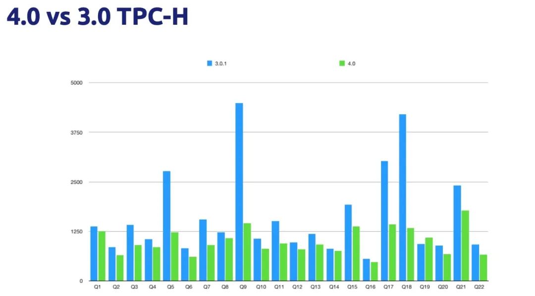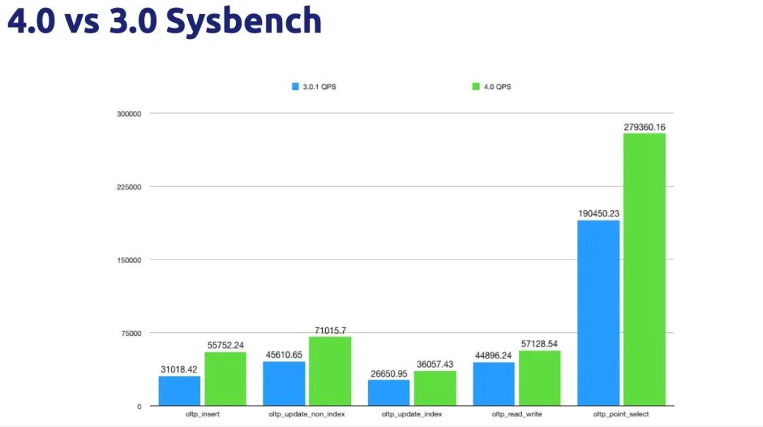 姚维在接受 InfoQ 采访时表示:“2020 年是 PingCAP 的里程碑年。”在今年的 5 月底、6 月初,PingCAP 将发布 TiDB 重要的 4.0 版本。该版本将会在性能、易用性、易管理性等方面有明显的增强, 事务处理能力方面也有大幅度提高。除此之外,在 4.0 版本上真正实现了 HTAP 功能。简单来说,用户可以在一套数据库上同时运行截然不同的计算负载,即联机交易的计算负载和海量数据的实时分析。此前,在数据库领域,这两种计算还不能完全放在一起,因为它们对资源的消耗、对计算本身的性能要求,以及对数据的处理方式是完全矛盾的。姚维表示:“我们经过两年多的内部开发,终于将 OLAP 和 OLTP 真正放在同一套 TiDB 集群上,让 TiDB 可以同时支持联机交易和海量的数据分析。并且这两种计算在内部转换的过程对用户是透明的。”通过底层数据同步及行列透明转换的技术,TiDB 将 TiKV 面向联机交易的行存式引擎与 TiFlash 面向实时分析场景的列存引擎,转为真正的行列混合数据架构。同时,该版本在 TiDB 分布式计算层实现了透明的可根据请求自动选择行列存储引擎的能力,使高并发、低延迟的联机交易与海量数据实时分析查询计算,在 TiDB 新一代架构上完美地融合在一起。在演讲中,姚维也为我们展示了 TiDB 4.0 版本性能优化的部分成果(图中的纵轴是指语句耗时,该值越低代表性能越好):