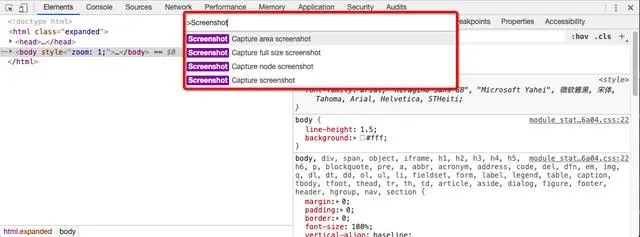 当前屏幕:Capture screenshot 截取浏览器当前屏幕内容,不包括控制台面板。