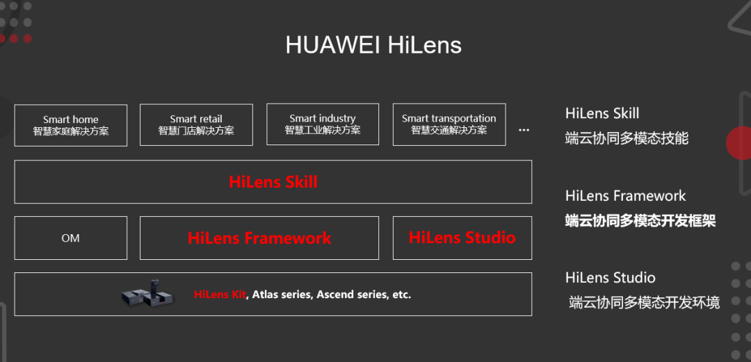 全面升级的华为云HiLens推出多模态开发环境HiLens Studio、开发框架HiLens Framework及技能市场HiLens Skill Market。