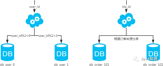 注:写入时,基因法生成user_id,如图。关于xbit基因,例如要分8张表,23=8,故x取3,即3bit基因。根据user_id查询时可直接取模路由到对应的分库或分表。