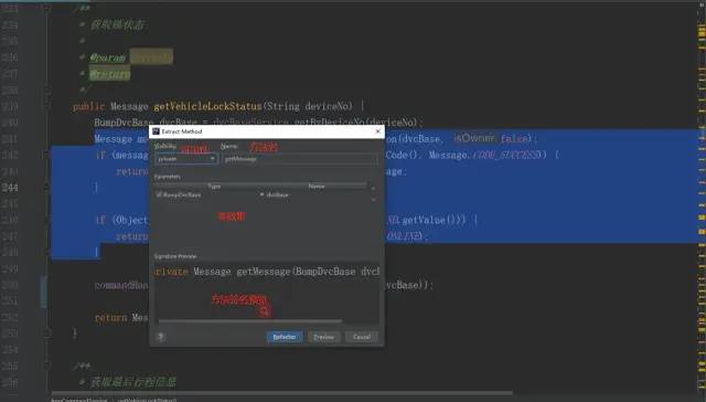 由于抽取的函数直接使用了未抽取的对象而导致重构失败,涉及到另一个重构(使用get方法而非直接使用私有成员变量),使用此重构即可解决