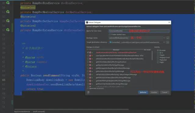 1.重构 选中要搬的成员变量和函数,右键->Refactor->Extract->Delegate(抽取一个委托者,委托他来管理这部分变量和函数,如果只有变量或只有函数,可以抽出参数对象Paramater Object或方法对象Method Object)