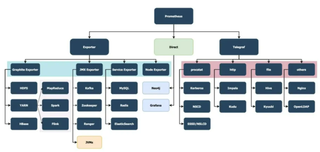 此类采集主要使用社区的开源方案,并在各类exporter上进行相关定制化开发。