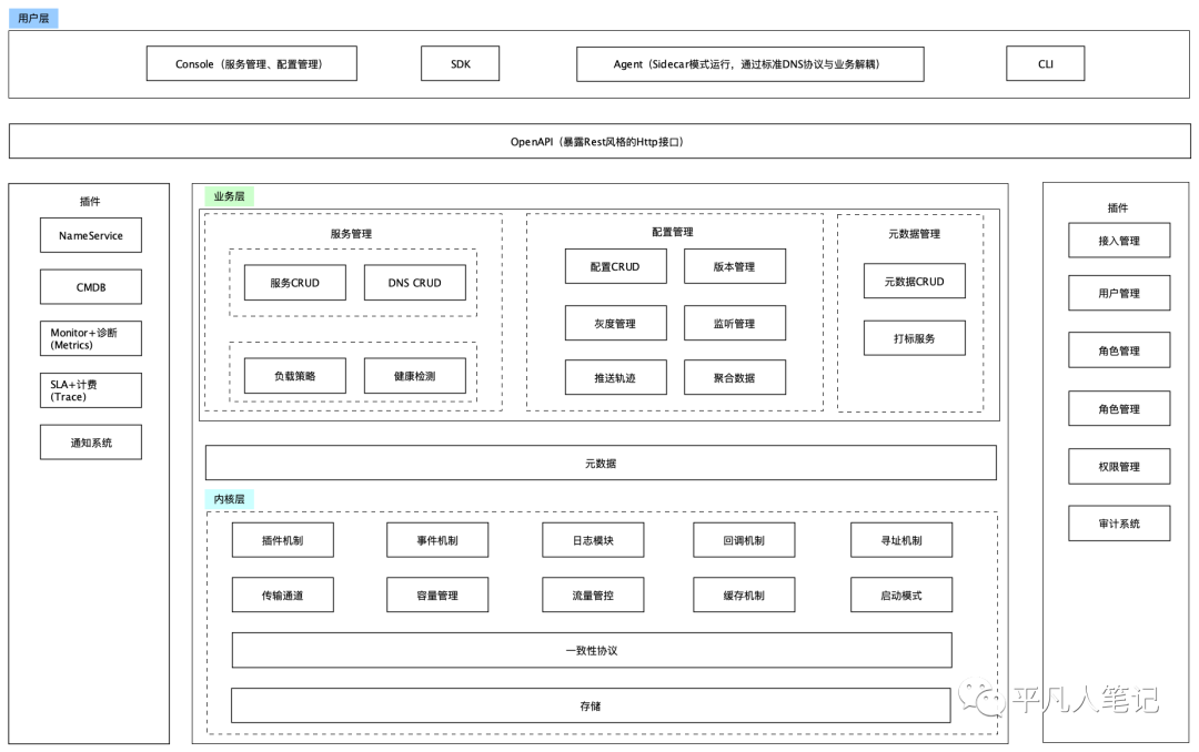 先简单介绍下Nacos的技术架构 从而对nacos有一个整体的认识 如图Nacos架构分为四层 用户层、应用层、核心层、各种插件 再深入分析下nacos一致性协议的发展过程及原理实现
