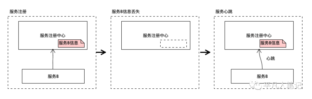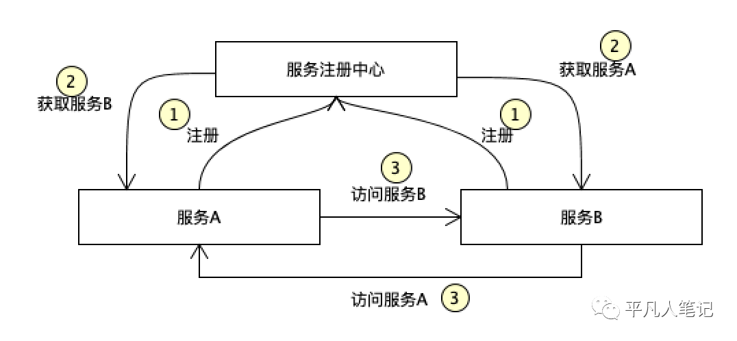 服务A和服务B往注册中心注册 服务A从注册中心获取服务B的信息 访问服务B 服务B从注册中心获取服务A的信息 访问服务A