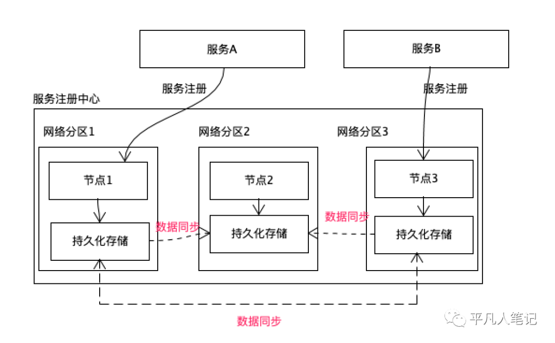 nacos集群包括3个节点 分别位于不同的网络分区 服务A往节点1上注册 然后持久化到节点1对应的本地存储上 此时要保证节点1对应的持久化数据必须同步到节点2和节点3上