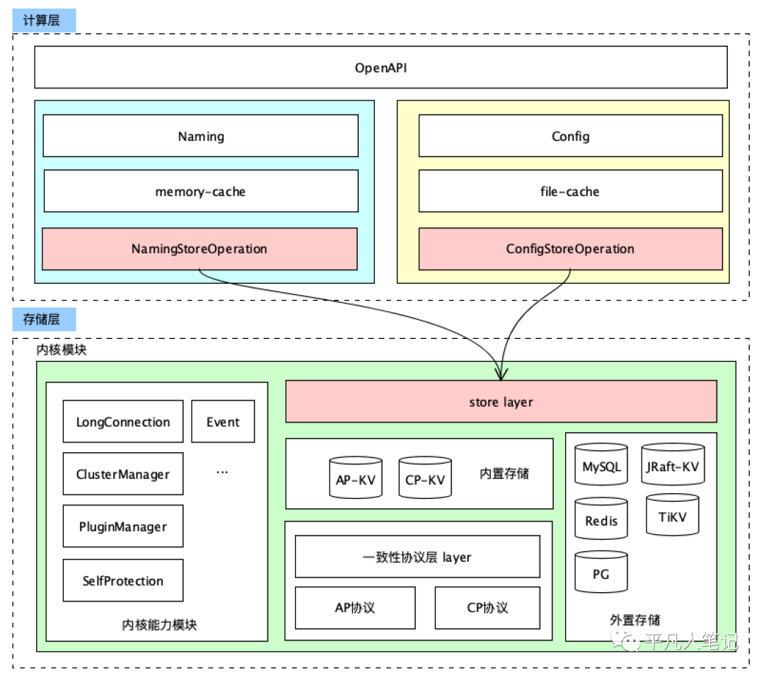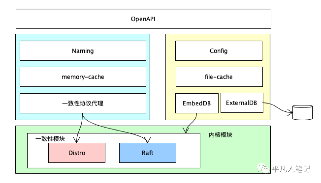 必然需要对Nacos的一致性协议做抽象以及下Nacos架构沉,使其成为Core模块的能力,彻底让服务注册发现模块只充当计算能力,同时为配置模块去外部数据库存储打下了架构基础