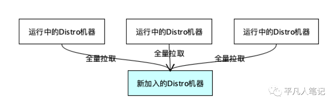 新加入的Distro节点会进行全量数据拉取 具体操作是轮询所有的Distro节点,通过向其他的机器发送请求拉取全量数据