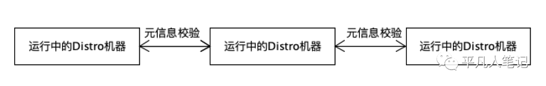 在Distro集群启动之后,各台机器之间会定期的发送心跳。心跳信息主要为各个机器上的所有数据的元信息(之所以使用元信息,是因为需要保证网络中数据传输的量级维持在一个较低水平)每台机器在固定时间间隔会向其他机器发起一次数据校验请求