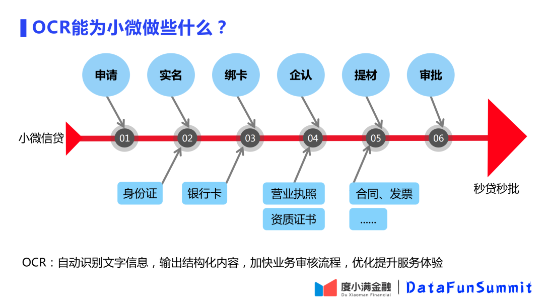 导读:今天跟大家分享一下,在金融小微场景下,我们通过OCR技术提升业务效率的一些思考和探索。主要介绍以下几大方面: