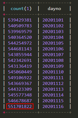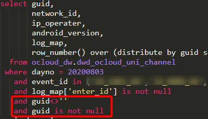 在对guid这个key进行初步统计后,发现为空值的数量竟然有数亿行,并不断增长: