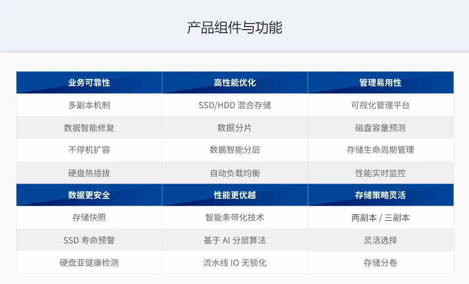 在支持客户多样化应用的实践基础上,aSAN不断推出新的版本,目前最新版本为aSAN6.7.0。对比其他同类存储产品,aSAN主要有以下优势: