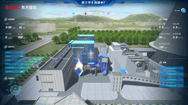 案例以某火电发电厂为原型,配置了发电机组。通过结合数据传输技术,将厂区运行信息、以及现场重点设备运行情况等信息在场景中实时展现,让厂区运维人员通过三维可视化大屏实时监控厂区生产信息,全面高效管理。
