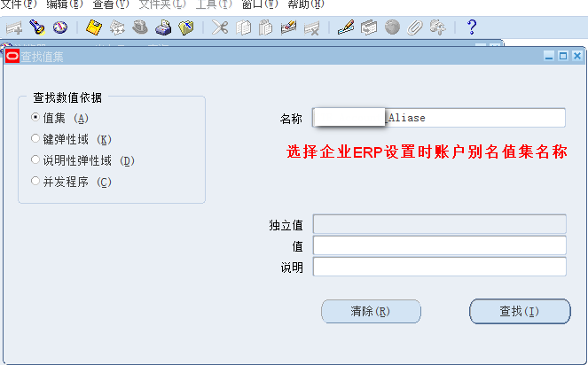 选择对应的aliase后点击查找,进入账户别名值集页面。