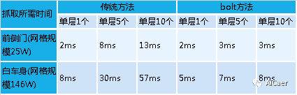 以下是两种不同算法实现的脚本在同一台电脑上同时抓取不同个数的washer孔需要的时间对比。可以看到采用了bolt方法的脚本,抓取速度明显提高,且随着同时抓取的孔的个数的增加,抓取速度的提升越发明显。