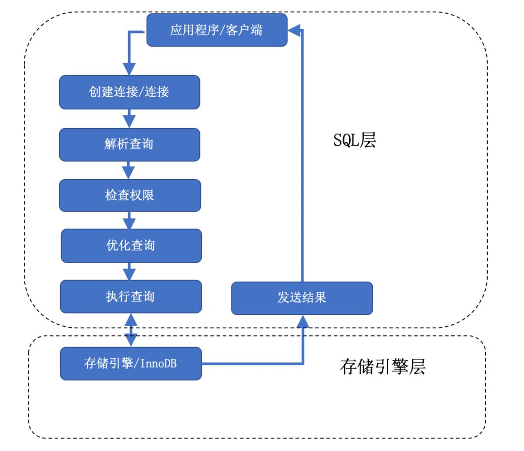 简单的总结一下,MySQL查询的生命周期包括:创建连接、解析SQL、检查权限、优化查询、执行查询(与存储引擎进行交互)、返回结果给应用程序或客户端。
