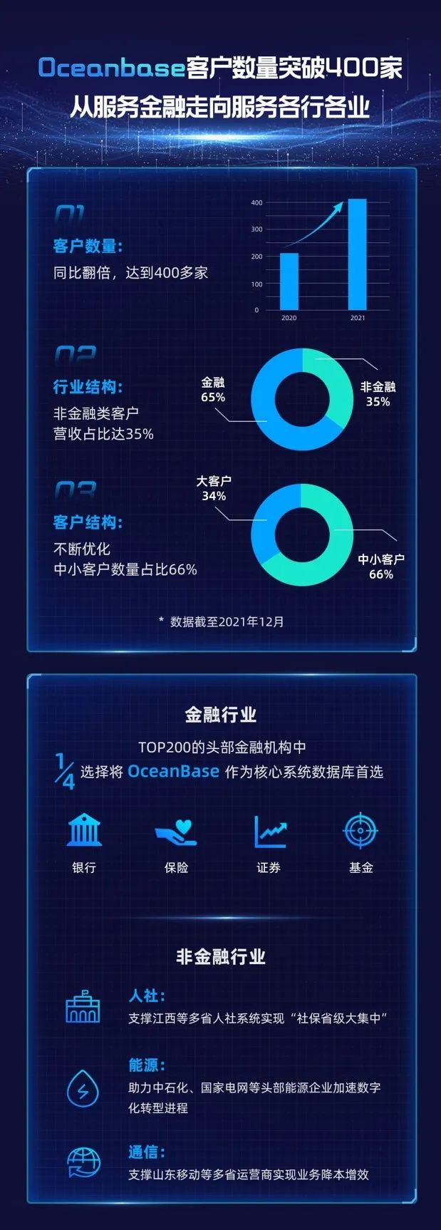 “过去一年,OceanBase的客户数实现翻倍达到400多家,其中来自非金融类客户的营收占比超过三成。”1月6日上午,OceanBase CEO杨冰在DC2021分布式数据库开发者大会上首次对外披露其关键营收信息。