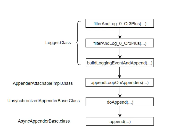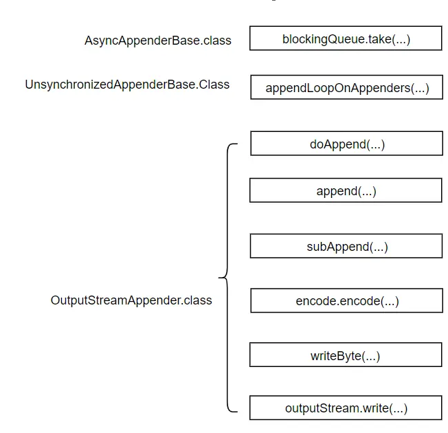 异步输出日志中最关键的就是配置文件中 ch.qos.logback.classic``AsyncAppenderBase``append