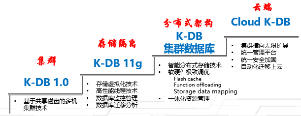 对此,目前全球主要的数据厂商,也都在陆续打造自己新的一体化云数据库解决方案。在国内,以浪潮为代表的新一代互联网数据厂商,也在引领这一波科技潮流,而它向市场祭出的“杀手锏”正是K-DB 一体化解决方案。从K-DB 1.0的RAC特性到K-DB 11g的KAS文件系统,再到K-DB分布式数据库系统架构,又到云数据库的突破,可以发现在企业级入口,浪潮基于一体化云服务解决方案打造的云生态体系越来越清晰。