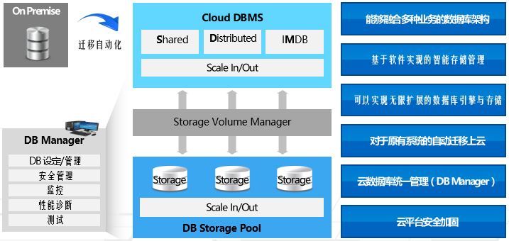 浪潮K-DB云数据库致力于进一步解决数据库层横向扩展及性能保障,实现了对云数据库集群的统一管理,实现云数据库的自动化动态扩展及收缩,着重解决安全接入及数据安全问题,并提供对于传统数据库系统的自动化上云解决方案。