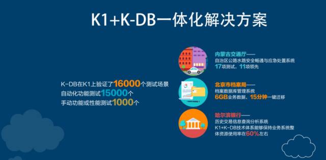 自2014年发布以来,天梭K1作为我国第一台关键业务应用主机,在高端Unix服务器市场的份额已经超过17.8%,位居同类型产品市场的前两位。而最初为天梭K1定制的K-DB数据库经历过持续的技术升级,目前也已经在多个应用主机平台上嵌入,软硬件一体化的优化升级,满足越来越多企业级客户云数据升级的需求,解决了企业后顾之忧,让他们放心把自己的数据放到K-DB云端。