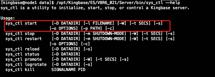 [kingbase@node1 data]$ /opt/Kingbase/ES/V8R6_021/Server/bin/sys_ctl start -D /data/kingbase/v8r6_021/data