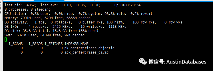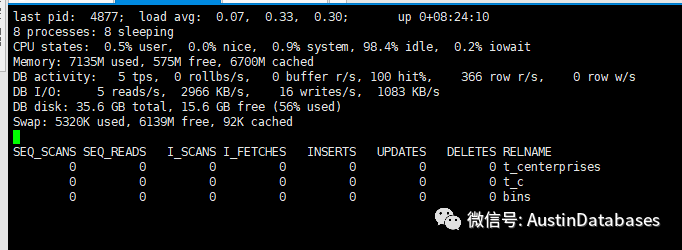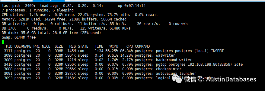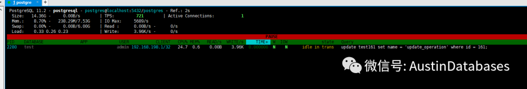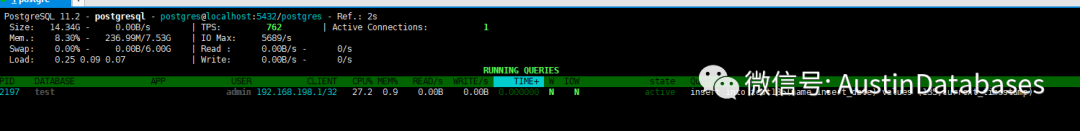 我们来看看这个工具能给你什么惊喜。下面这个图是就是pg_activity