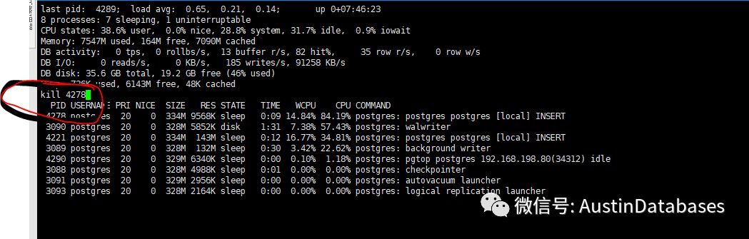 另外PG_TOP 还有可以抓取当前你想看的线程正在执行语句的功能