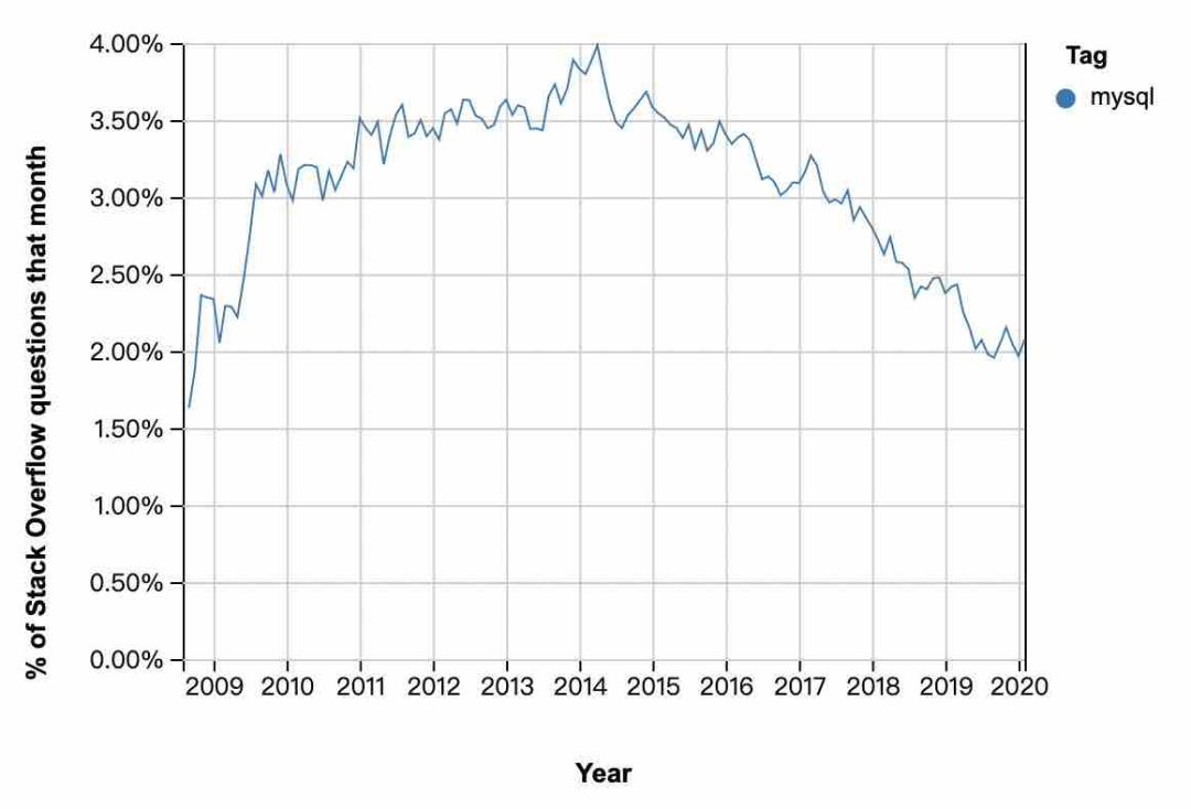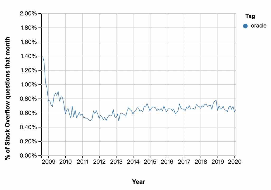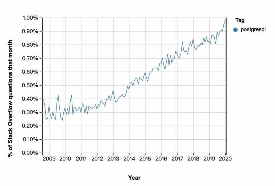 全球最大搜索引擎google, 全球最热开发者问答社区显示, 过去5年PG处于上升趋势, 招聘JOB人数最多. 相比而言Oracle以及被Oracle收购的MySQL都处于下降趋势.