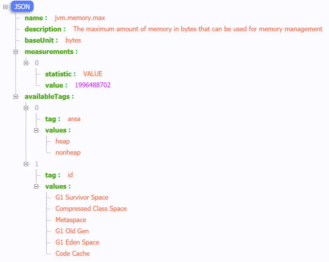 端点提供了一些有用的应用程序指标(JVM 内存使用、系统CPU使用等)。