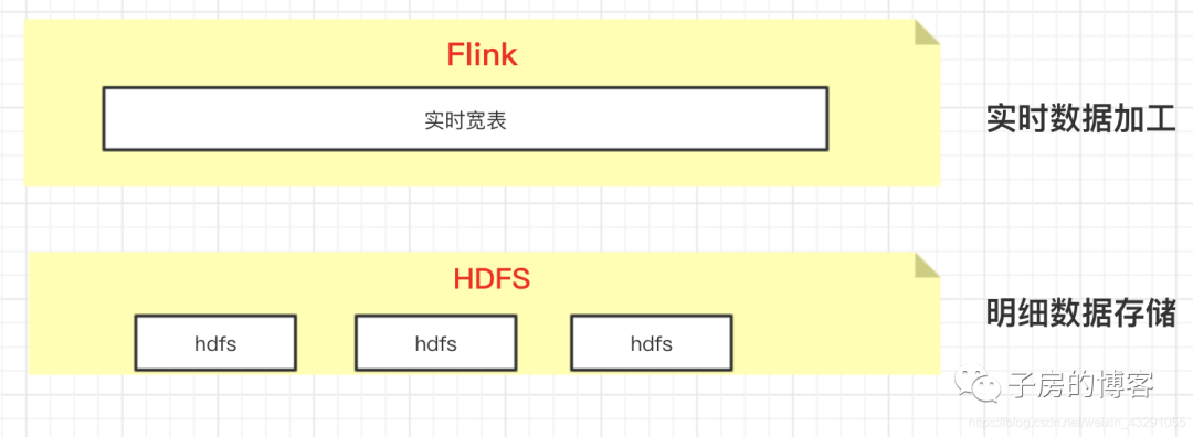 因此可以考虑采用下图的方案,将加工的宽表通过Flink写入到HDFS,然后新建hive表进行关联HDFS数据进行关联查询。