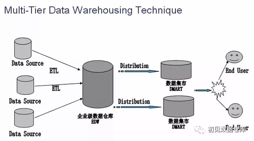 数据仓库(DW),不是实实在在的一个仓库,而是对于数据的一个概念或者说一个系统,它是一个非实时性的数据库。与数据库对比,数据库是放实时的事务性的数据,它产生的是每一天的、业务的数据,例如POS机,流水,等。而数据仓库,是将底层的数据库数据集合起来,用以作决策者使用的数据。