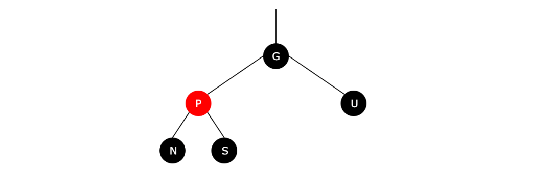 由红黑树性质 4 可知:红色结点不能连续。那么此时该插入子树的红黑层数的情况是:黑-红-红。显然最简单的处理方式就是将其改为:红-黑-红。