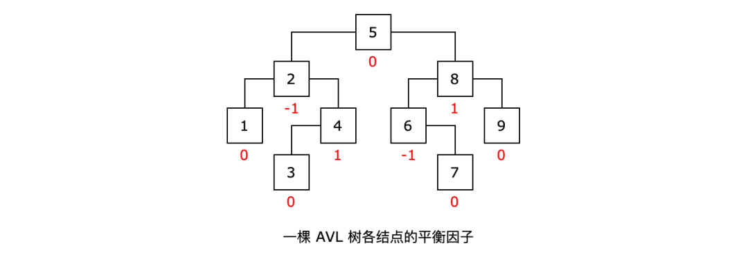 每个结点的平衡因子只可能是 -1、0、1(如果绝对值超过 1,则认为是失衡)