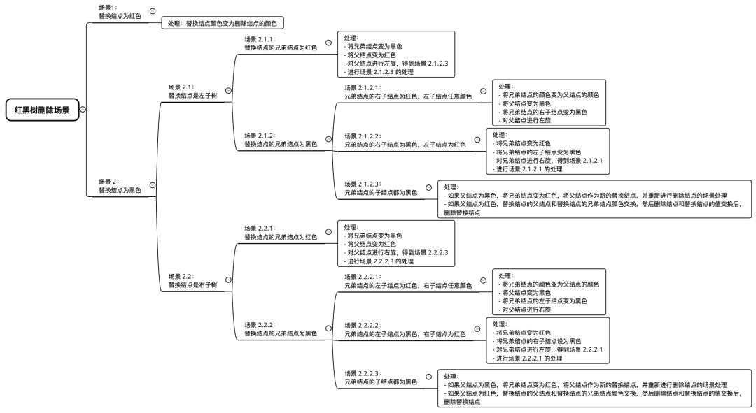 如果父结点为黑色:将兄弟结点变为红色;将父结点作为新的替换结点;重新进行删除结点的场景处理。