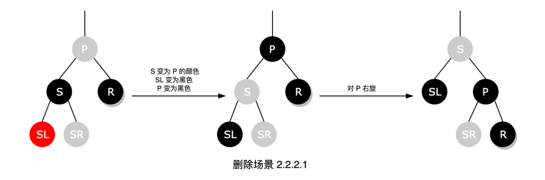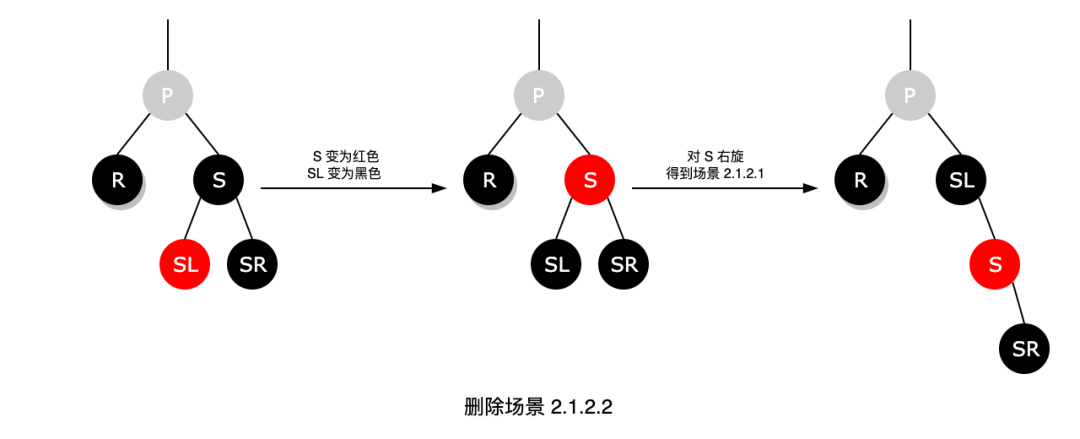 场景 2.2.2.2:替换结点的兄弟结点的左子结点为黑色,右子结点为红色