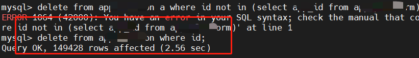 测试场景4:模拟生产环境误删数据操作。DELETE列值都有数据的int整型类型字段。