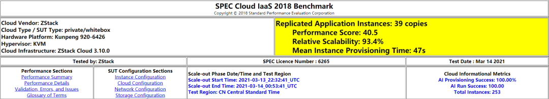 2021年6月,国际权威的标准性能评测机构SPEC更新了SPEC Cloud IaaS 2018测试结果,作为目前唯一获得华为鲲鹏Validated认证的云厂商,云轴科技(ZStack)提交的基于ZStack Cloud云平台+鲲鹏服务器+银河麒麟服务器操作系统V10的测试结果刷新了两项历史记录:在相同硬件规模情况下,性能提升至40.5为全球最高分,可扩展性提升至93.4%为全球最高。