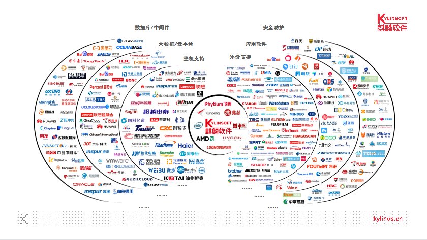 截至目前,银河麒麟高级服务器操作系统V10实现同源支持飞腾、鲲鹏、龙芯、申威、海光、兆芯等自主平台,以及Intel/AMD芯片;兼容全球主流整机、板卡外设;支撑全球主流数据库、中间件、服务端组件、商业软件及开源软件等,合作厂商超3600家,硬件适配超178000件,软件适配超56000个。