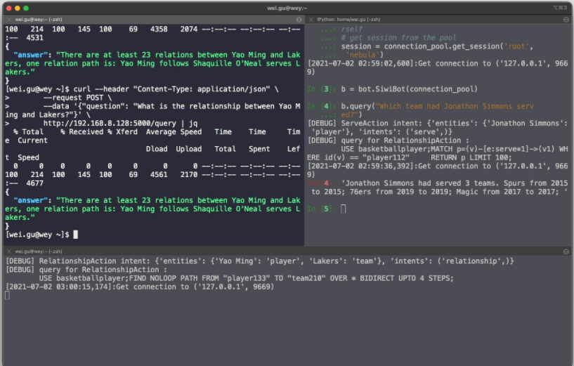 如上图的设计流程,Siwi 的后端部分需要接收问句,处理之后访问知识图谱(图数据库),然后将处理结果返回给用户。