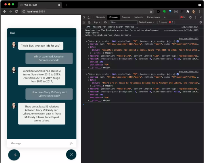 │ ├── App.vue # Listening to user and pass Questions to Siwi-API