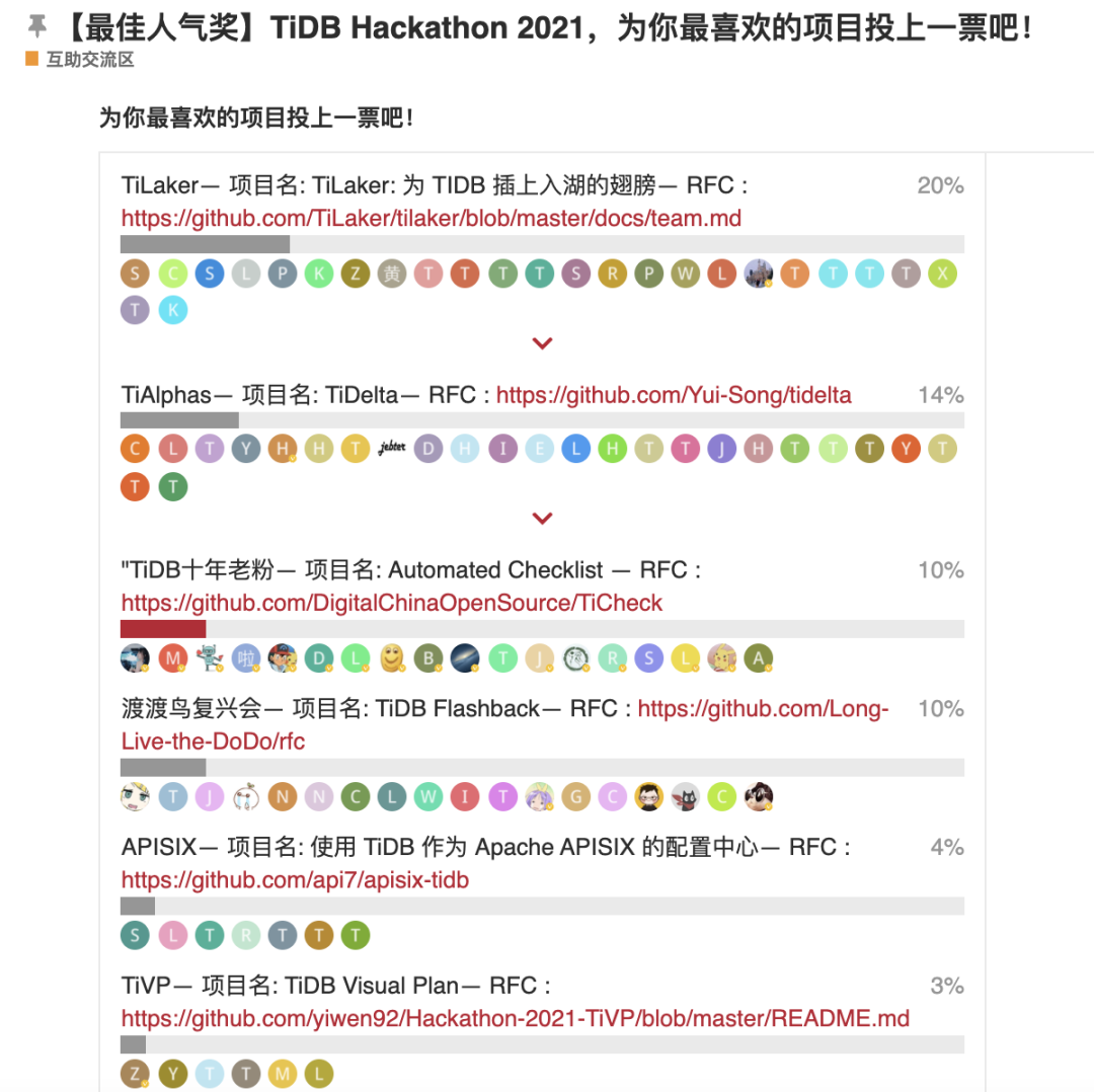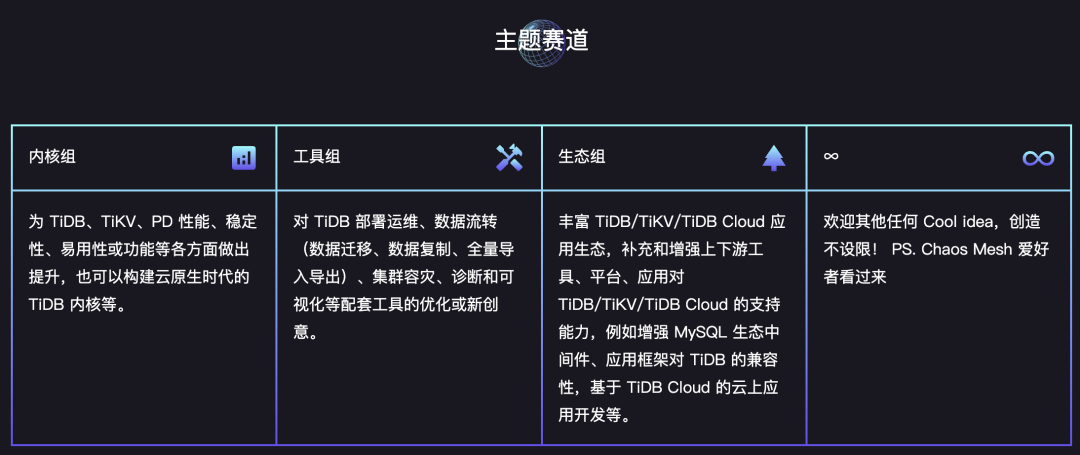这样的比赛和选手在TiDB上的创新,才得以你在使用TiDB的时候,有各种各样得心应手的工具。