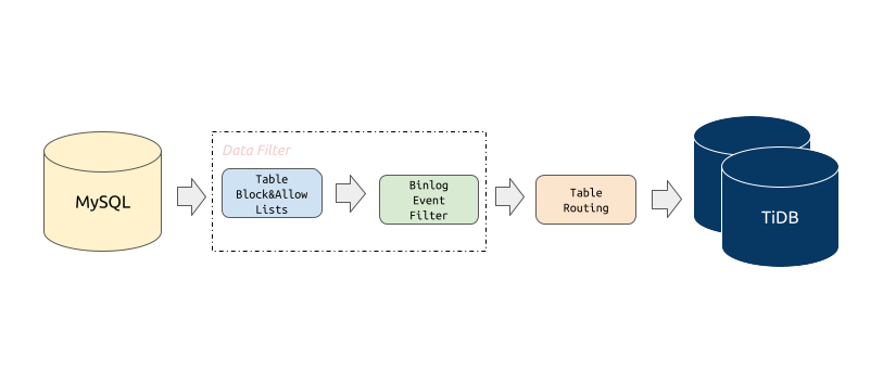 可以进行黑白名单过滤(过滤指定的数据库和表)、操作类型过滤(过滤Truncate、Insert等操作)、合并路由(MySQL多个表合并)。DM