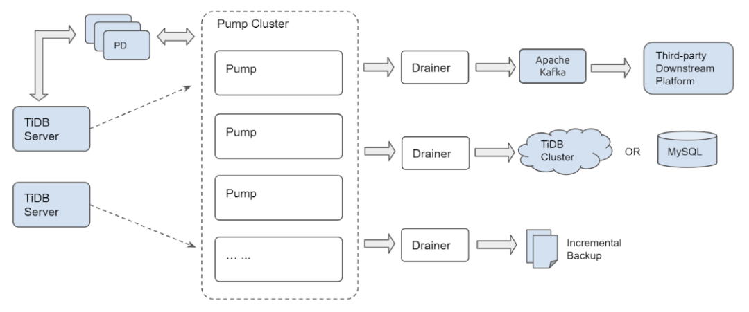 组件应运而生。而TiDB节点可能有多个,这个时候我们就需要有一个组件Drainer