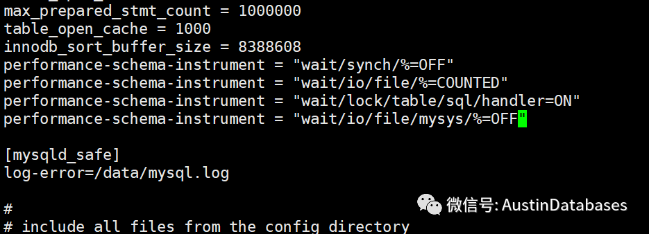 下面是目前对instrument 中信息的收集的配置,将这些配置配置到【MYSQLD】下