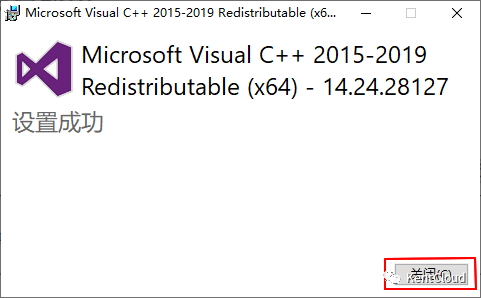 步骤 4):弹出“设置成功”的界面,表示该框架已经安装完成,单击“关闭”按钮即可。所有的框架安装均可参考本操作,如图所示。