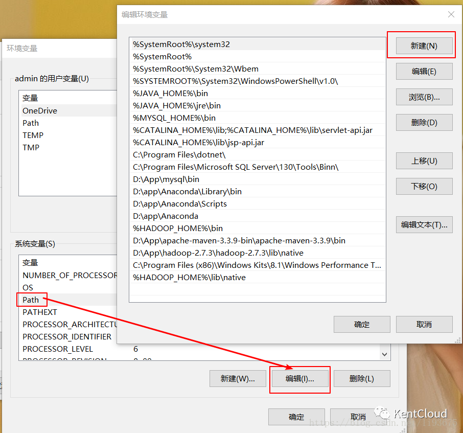 2、新建完环境变量后,在环境变量里面找到Path,点击编辑,在弹出的框里面点击新建,新建一个环境变量